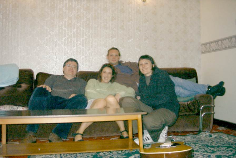 My housematesI spent the holiday sharing a house on a self-catering basis. Here are the happy band from the second week: me, Frances, Matylda, with Tok draped along the back of the sofa.