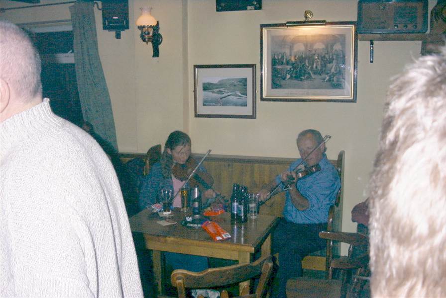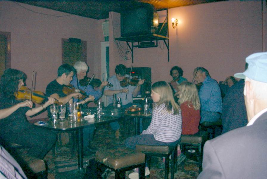 Donegal FiddlingOnce or twice I made it into one of the local pubs, where there was usually a bit of a session on: this shot is of James Byrne and about six other fiddlers going at high speed in the Glen Head.