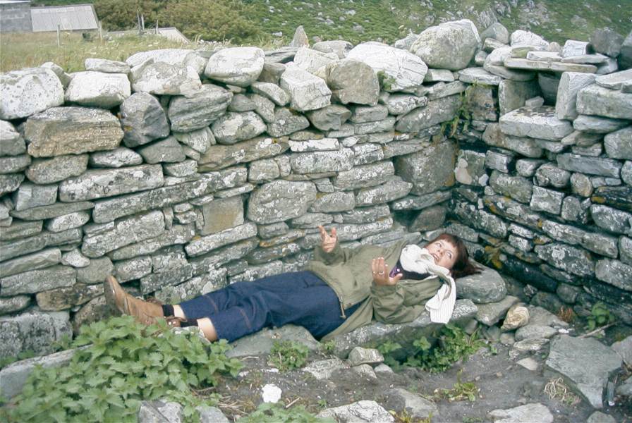The signal tower againI climbed Glen Head to the tower three times this year! This happy band is: Paula, Tok, Michelle, me, Edel and Lisa. Notice the lack of footwear of certain people! How my little car got along the road with all this lot in I don't know.